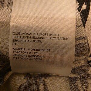 A polished summer staple, this Club Monaco shell top combines sophisticated design with breathable comfort. Crafted from a premium linen blend, it features a bold, artistic black and white floral print that pairs perfectly with tailored trousers for work or denim for the weekend. The cut is modern and boxy for a breezy fit, making it an ideal choice for warm-weather styling. Original Price $118.