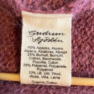 Yarn is 40% alpaca / 25% organic cotton / 25% polyamide / 10% wool