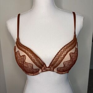 Victoria's Secret Push Up Bra Lace Trim Brown Tan Size 36B
