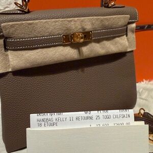 Offered for sale is a brand new Hermès Kelly 25 Retourne, crafted in exquisite Togo calfskin with elegant gold hardware. This iconic handbag features the coveted Retourne construction, giving it a softly structured, timeless silhouette that transitions effortlessly from day to evening.
