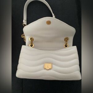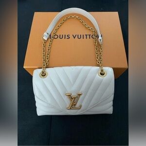 100% Authentic Louis Vuitton ‘New Wave Chain Bag’ in Ivory with gold hardware. Great condition with minor creasing, a very faint small grey mark (shown in photos circled in red), and minor wear on the bottom (also shown in photos).Can be worn as a shoulder bag or as a crossbody. Comes with original dust bag and box.