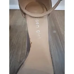 Madden Girl Beella block-heel sandals tan faux-suede material-Sizs 7