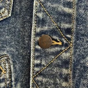 Classic Wrangler denim jacket. Features button details and front pockets.