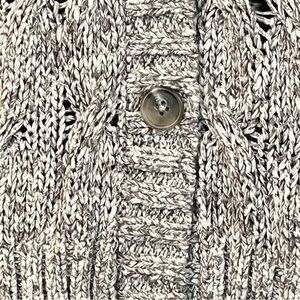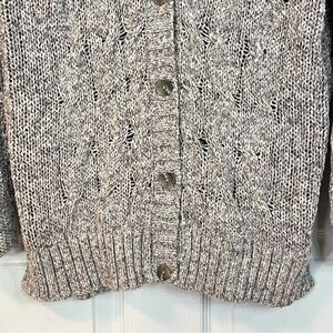 Cozy cable knit design. Button-up front. Soft and stylish.