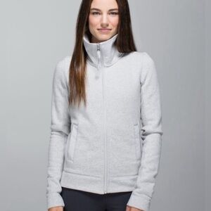 Lululemon En Route Jacket. High collared with zipper vent for when you want to cool off and enjoy more airflow.