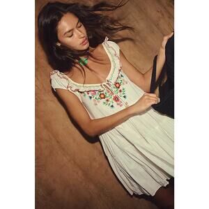 New Free People Celia Floral Embroidered Boho Mini Dress $228 Large Ivory