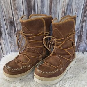 Embrace the cold with these cozy brown lace-up winter boots. Designed for warmth and style, they offer both comfort and durability.