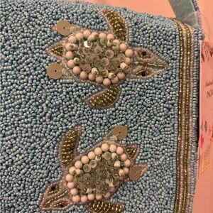 NWT made in India Aqua hand Beaded Turtle shoulder Bag