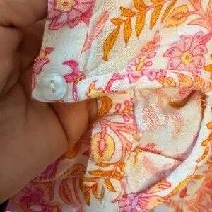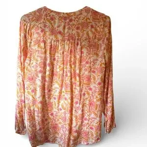 Lucky Brand blouse, floral blouse, women’s floral top, pink orange blouse, V neck blouse, boho blouse, lightweight blouse, spring top, flowy blouse, relaxed fit top, viscose blouse, woven blouse, casual everyday top, cottagecore blouse, easy drape top