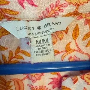 Lucky Brand Floral V Neck Blouse Pink Orange Women’s Medium