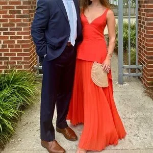 Simkhai Sequoia Pleated Combo Sleeveless V-Neck Midi Dress in Flame Orange