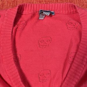 Y2K Watermelon Hot Pink Skull Knit Cardigan Sweater