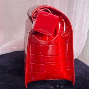 - Crocodile-embossed and shiny leather folded clutch