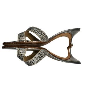 Leggiadro Rhinestone silver Mules Kitten Heel Sandals Leather Sz 38.5 us 8