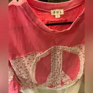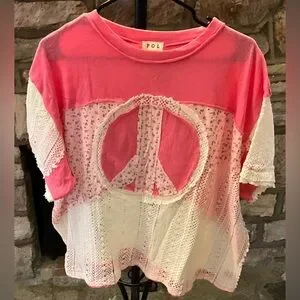 (NWOT) POL Pink Patchwork Peace Sign Top | Boho Cottagecore Lace | Size L