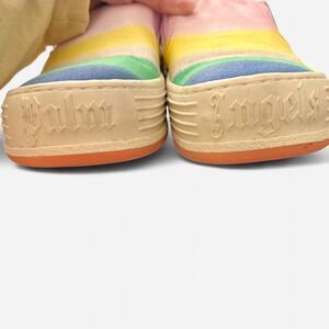 Statement Palm Angels slip-on sneakers featuring a chunky rubber platform and bold multicolor stripe pattern.