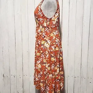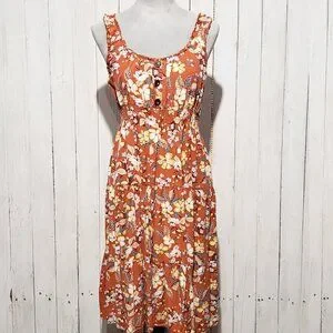 Lapis Dress L Orange Floral Sleeveless Cottage Prairie Tomato Bloom Earthy