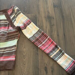@sharrah88 Hello, It is a knit fabric so naturally it has some spots that wear, but I did my best to include everything in the description. The sleeves are not stretched out, they fit pretty snug to me.