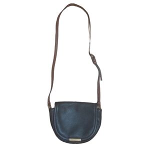 Elegant black leather crossbody bag with a stylish brown strap. Perfect for any occasion.
