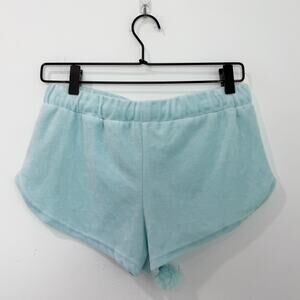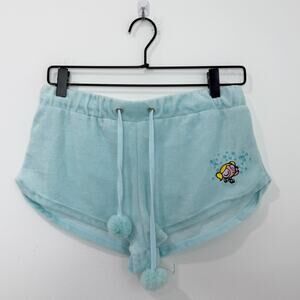 These velour shorts have a pompom drawstring closure with an embroidered Bubbles graphic on the hem.