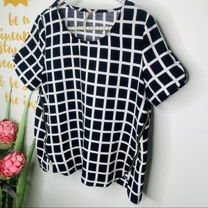 Mittoshop Black & White Checker print w/Gold Side Zipper Detail Top. This is a SUPER cute Blouse w/ edgy, & cute details. Hi/Lo w/ Sides slightly longer