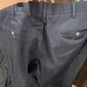 Sleek navy dress pants. Ideal for business or formal events. Comfortable fit.