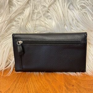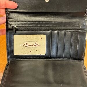 Buxton Genuine Leather Fold Over Wallet Black With Hasi Hato Japanese Snap