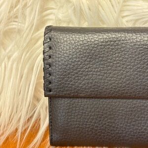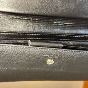This black Buxton leather fold over wallet is a stylish addition to any woman's accessories collection. It features a high quality Hasi Hato Japanese snap, a coin pouch, and a picture organizer. The wallet is made of high-quality leather, making it durable and long-lasting. Its compact size of 7.5 inches in length and 4 inches in width makes it easy to carry around, while the folding design allows for easy access to your essentials. The wallet is perfect for those who appreciate the beauty and simplicity of leather accessories.
