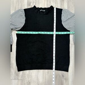 Adrianna Papell Black Top with White Mesh Sleeves and Ruffle Mock Neck Size L