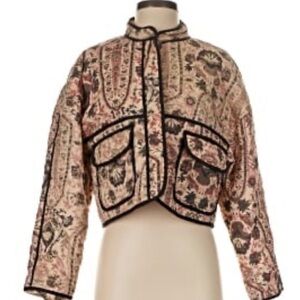 Elevate your style with this chic floral patterned jacket. Perfect for adding a touch of elegance to any outfit. Size S