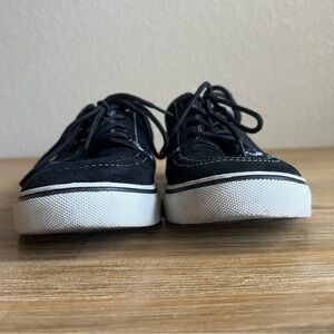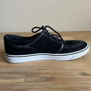 Upgrade your sneaker rotation with these preowned Maui and Sons men’s size 10 black suede skate shoes. Featuring a classic low-top silhouette, white stitching, and durable rubber soles, these shoes are built for both streetwear style and skate performance.