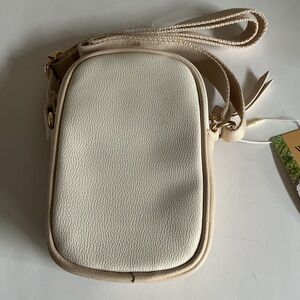 This adorable cream mini bag features a quilted front pocket with Winnie the Pooh, Tigger, Eeyore, and Piglet. Perfect size for daily essentials like your phone, cards, and keys.