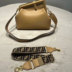 Fendi Beige Crossbody Bag with Logo Strap