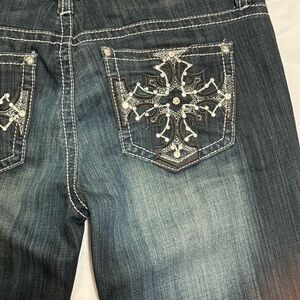 Upgrade your wardrobe with these stylish dark blue flare jeans. Perfect for a chic and comfortable look.