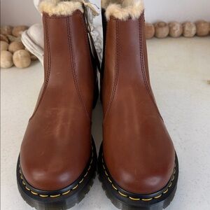 Dr Martens 2976 Leonore Chelsea Boots Faux Fur Lined in Saddle Tan Size 9 (NWOB)