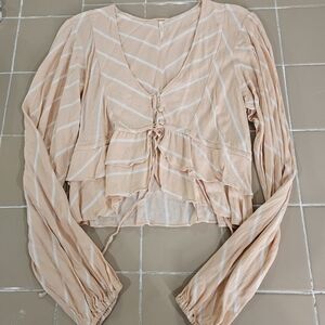 Free People Long Sleeve Petal Combo Peach Ruffle Top (Samifran). Size M. This super cute ruffled hem and sophisticated stripe pattern of the Free People cropped flowy top will for sure become an essential in your closet. 100% RAYON.