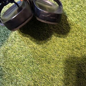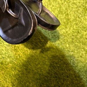 Some minor fraying on interior areas of the logos of the sandals. Minor scuffs