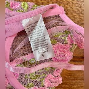 🎀🌷 Ethereal Pink Floral Embroidery Sheer Lace Sexy Lingerie Bra Bodysuit 🌷🎀 NWT