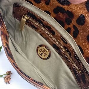 Tory Burch Ainsley Leopard Print Patent Leather Clutch Crossbody Gold Logo Bag