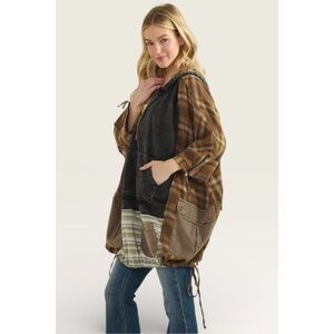 Keywords: half zip hoodie, oversized hoodie, hoodie dress, patchwork hoodie, plaid hoodie, pullover hoodie, kangaroo pocket hoodie, drawstring hem hoodie, western boho, desert glam, grunge