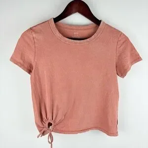 Aerie Women’s Cropped Keyhole Shirt Top Burnt Red Pink Loungewear Distressed XS