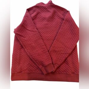 Classic L.L. Bean quilted snap-neck pullover in a rich brick red tone. Soft, cozy quilted knit with a relaxed traditional fit — perfect for layering in cooler weather.