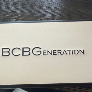 Chic BCBG flats with a textured black and white design. Stylish and versatile for any outfit.