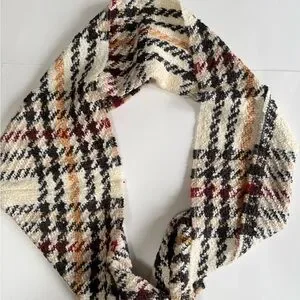 NWT! V. Fraas Cashmink Infinity Scarf. Houndstooth & Plaid. Ivory