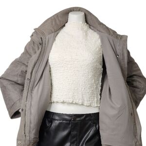 Be Cool Taupe Quilted Puffer Jacket S/M NWOT Utility Luxe Cozy Neutral Winter