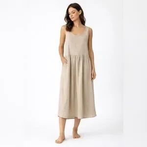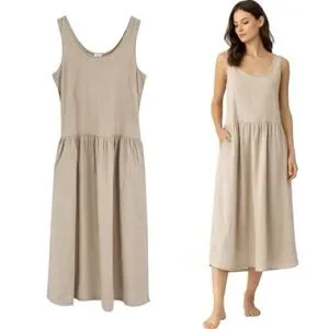 CP Shades Hand-Dyed Cotton Tank Midi Dress Natural Beige Size Medium