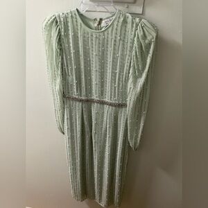 Step out in style with this elegant green beaded dress. Perfect for any occasion, this dress features intricate beadwork that adds a touch of glamour.
