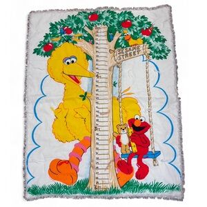 Pre-owned, good condition.Sesame Street Panel made into a blanket.34” x 42”.Lace trim. 70% polyester and 30% cotton.