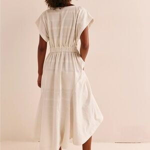 Free People Outta Here Bohemian Summer Elegant White Midi Button Textured Dress
