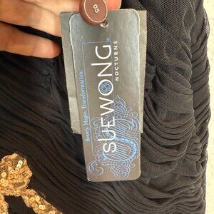Sue Wong Cocktail Dress 6 Black Gold Beaded Formal Y2K.